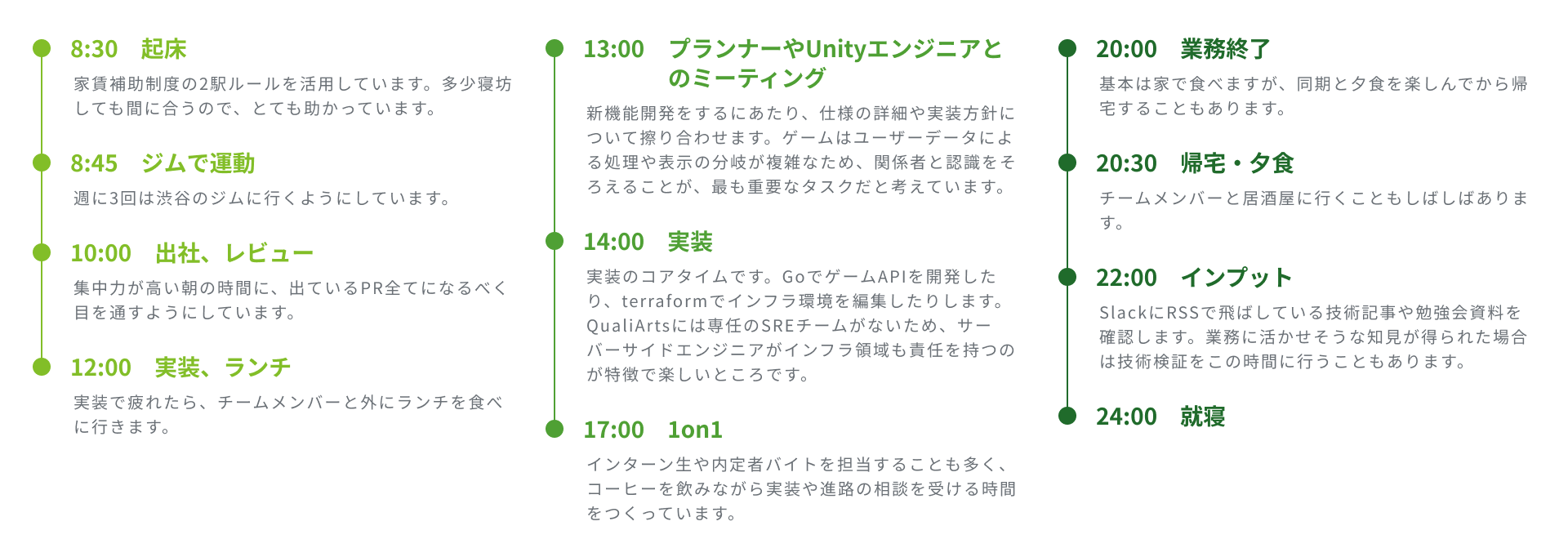 休日は主に技術のキャッチアップに充てています。特に好きなGo言語に関する記事や勉強会資料を読み、日々の業務に活かせるヒントを探しています。また、社内外問わず登壇の機会があれば、テーマについて深く調査し、スライド作成に取り組みます。