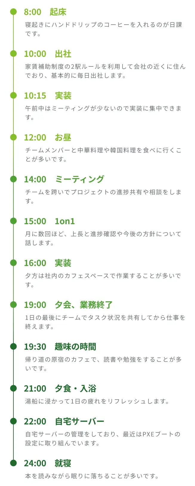 プライベートクラウド開発では、ハードウェア・OS・ネットワークなどの低レイヤー技術の理解はもちろん、ソフトウェアエンジニアリング全般の幅広い知識も求められます。さらに、まだ世の中に確立された解決策がない課題に取り組むことも多く、設計から実装まで自ら手を動かして突破できた瞬間に大きなやりがいを感じます。