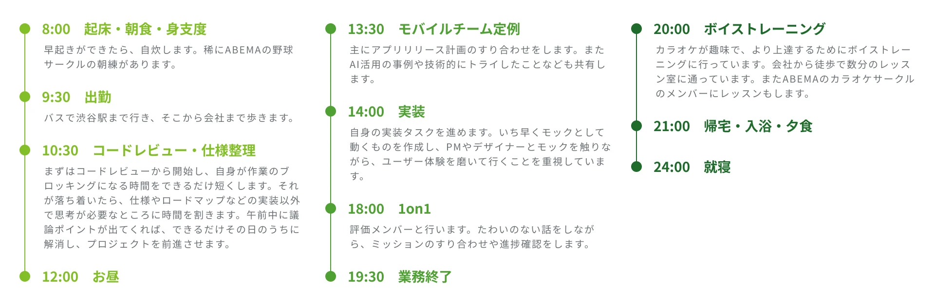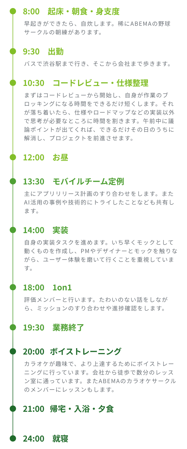 大規模なプロジェクトを成功させ、ABEMAのプロダクトやチームが飛躍的に成長できた時に、大きなやりがいを感じます。ABEMAでは、常に大規模なプロジェクトやイベントが進行しており、困難な課題に挑戦する機会が豊富にあります。