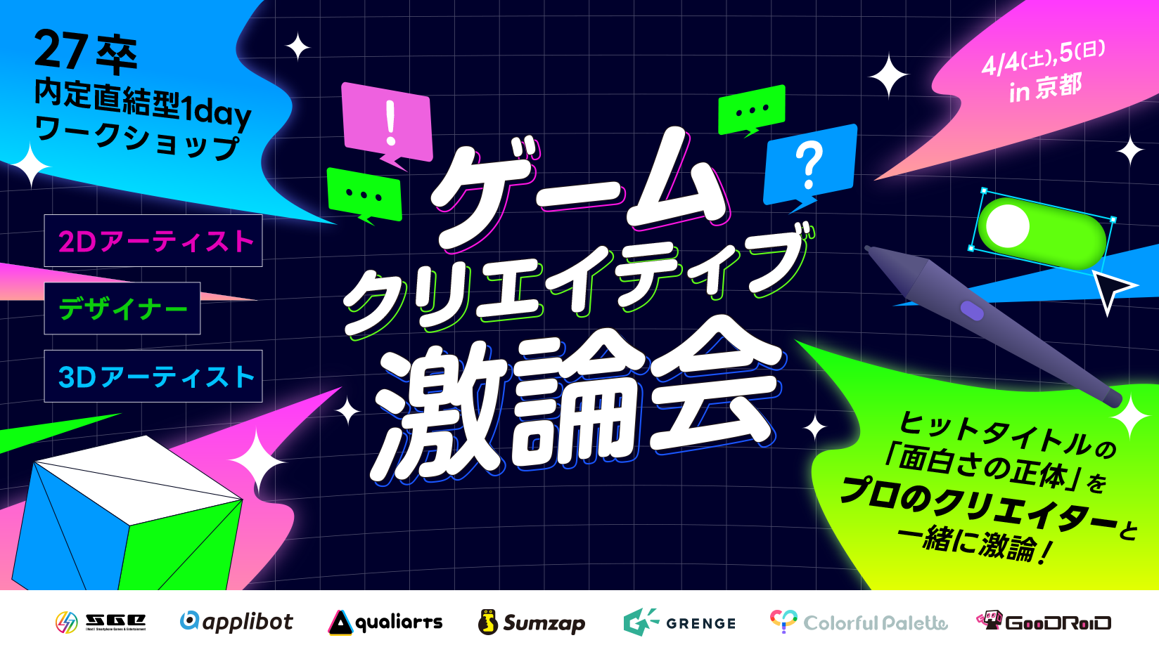 ゲームクリエイターを目指す、27卒の方を対象とした内定直結型1dayワークショップを京都にて開催します。