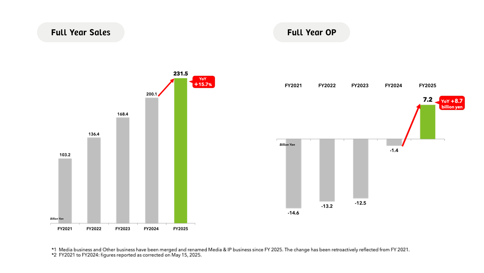 Regarding operating profit, we have seen a steady improvement since reaching the bottom in fiscal 2020. We achieved profitability in fiscal 2025 for the first time in 10 years since ABEMA's launch. We will continue to pursue a highly profitable business model through sustained revenue growth.