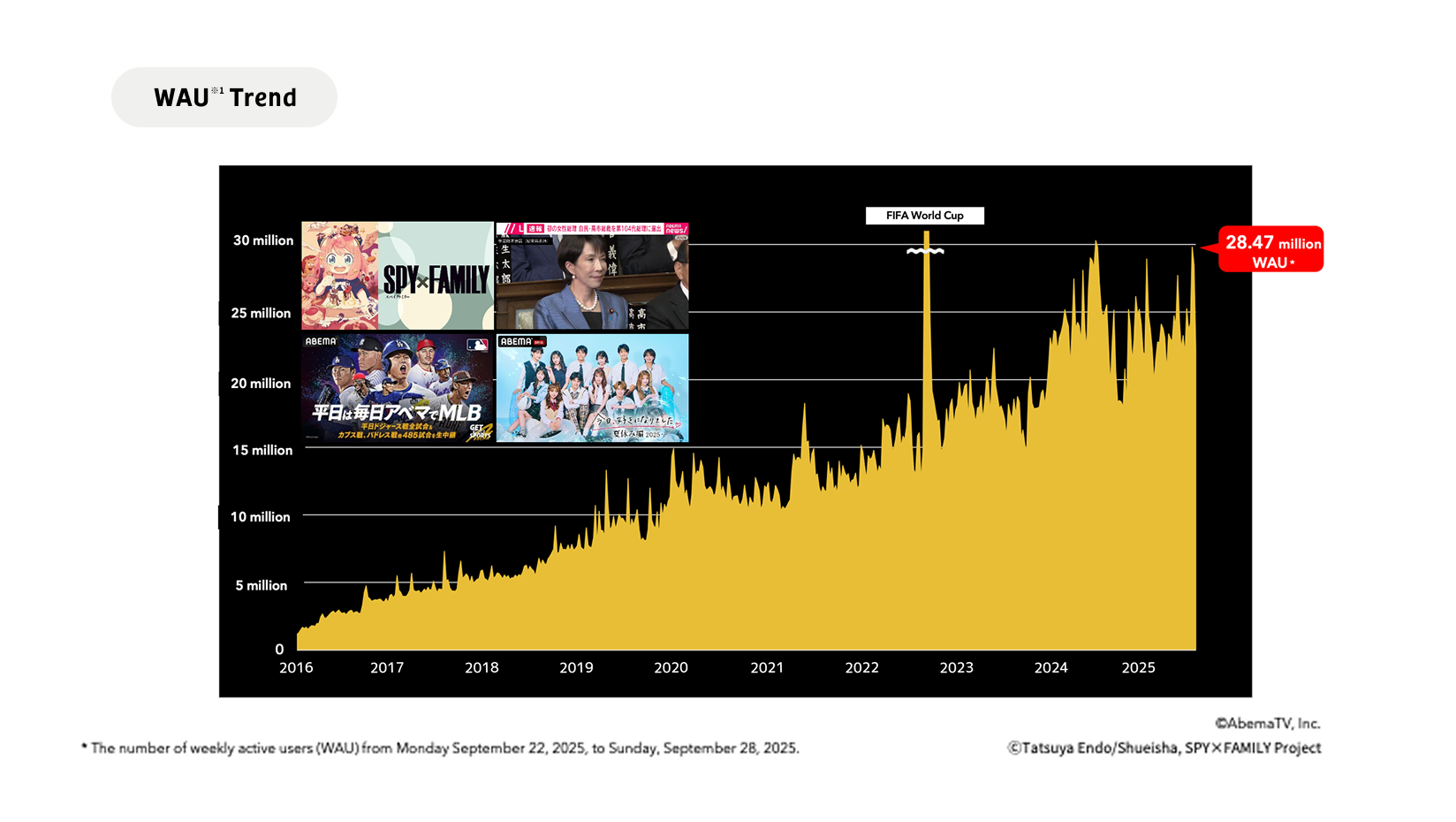 Since ABEMA's launch in April 2016, we have aggressively invested in content production and acquisition, which has increased the medium’s presence. In addition to sports, anime, and news, ABEMA's original programming has gained popularity, maintaining a high weekly active users (WAU) exceeding 28 million. By expanding ABEMA's peripheral businesses through the inclusion of companies like Nelke Planning Inc., which provides 2.5-dimensional musicals, and NITROPLUS Co., Ltd., known for its expertise in IP creation, alongside ABEMA's advertising and subscription revenue and WinTicket, Inc., which operates online keirin betting, the Media & IP business has achieved high revenue growth rates.