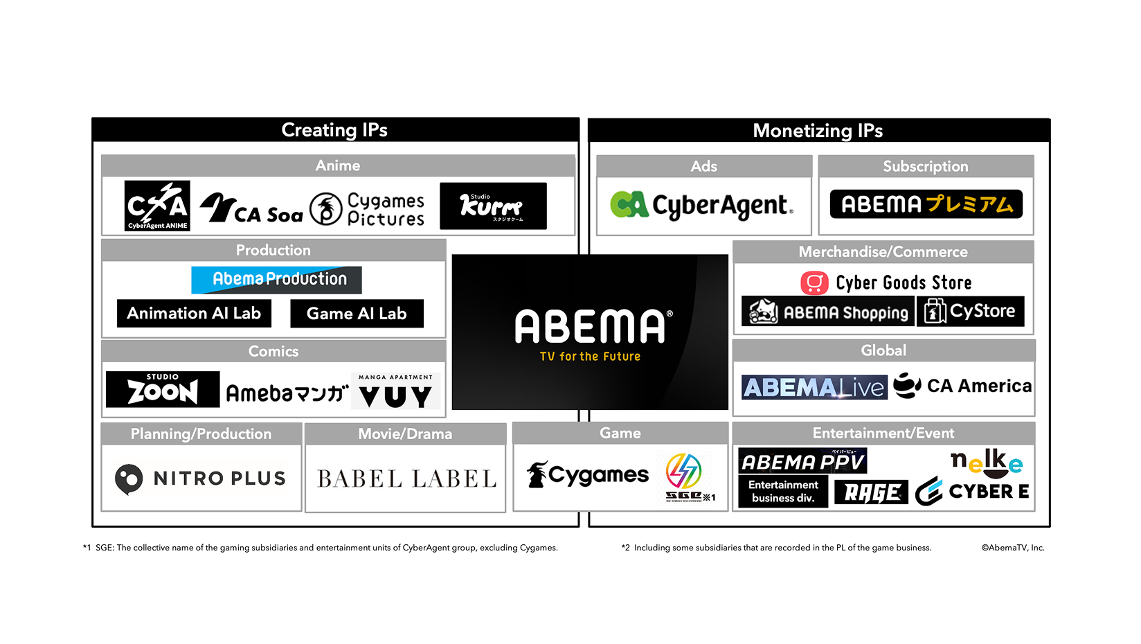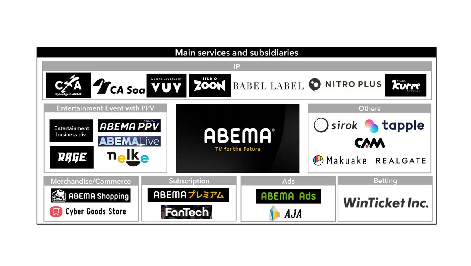 Operating a socially influential medium generates synergies with the advertising business, such as advertising sales of ABEMA, and with the gaming business, such as streaming anime on ABEMA, which will boost the group's overall profitability.