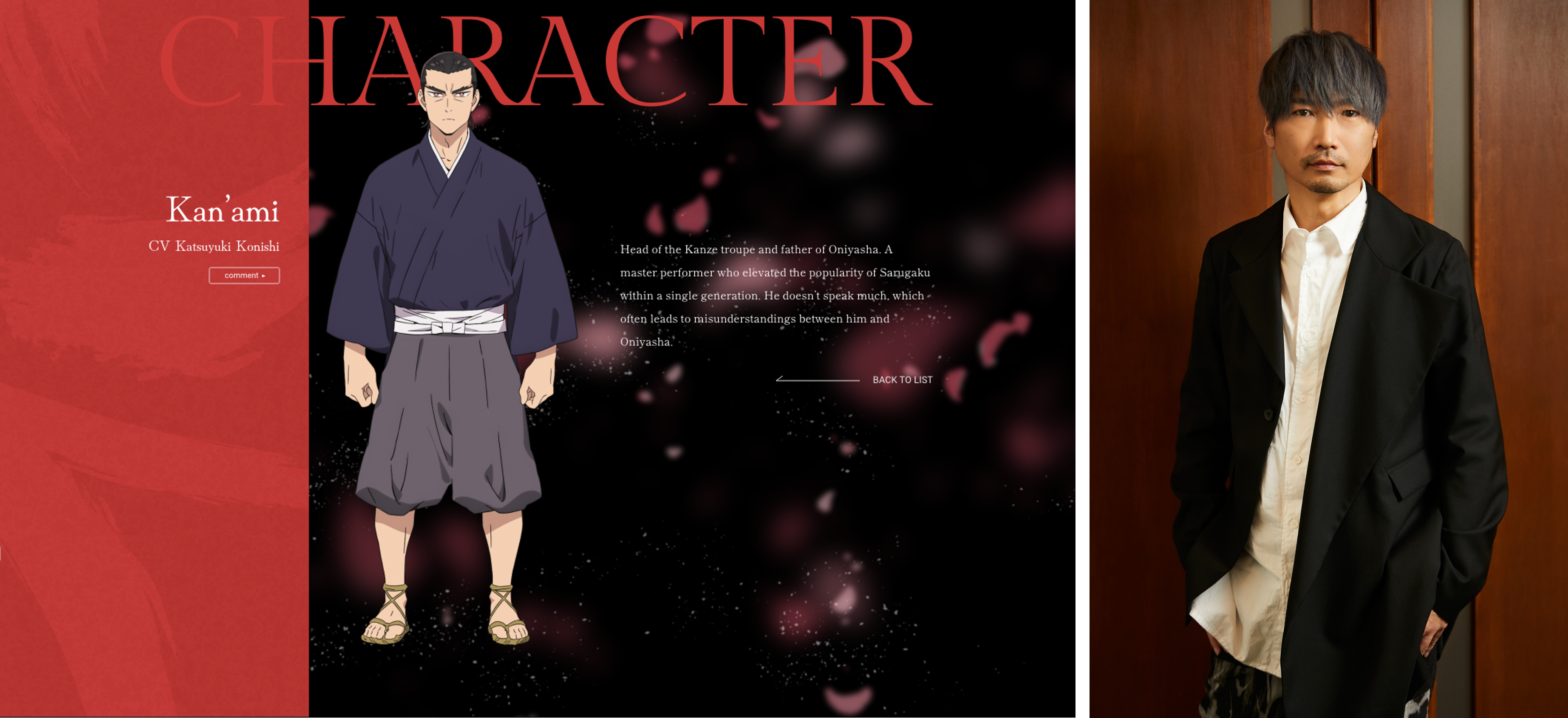 I’m Katsuyuki Konishi, and I’ll be playing Kan’ami in The World Is Dancing.