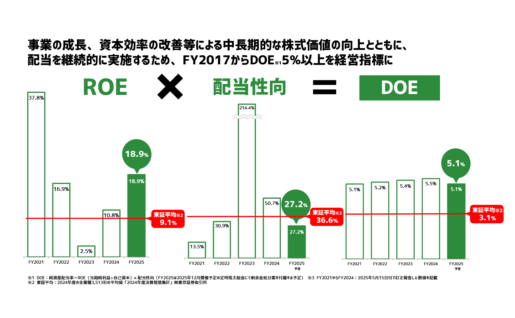 - ※配当総額:FY2025は2025年12月開催予定の定時株主総会にて剰余金処分案を付議する予定