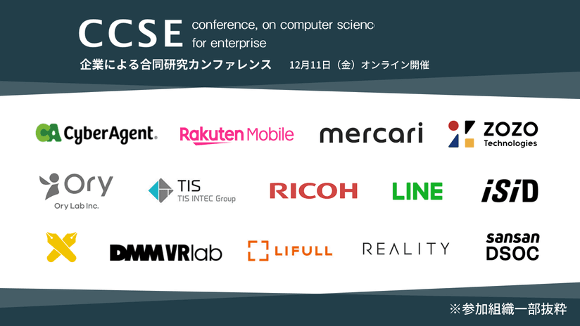 株式会社サイバーエージェント(本社:東京都渋谷区、代表取締役社長:藤田晋、東証一部上場:証券コード4751)は、企業の研究所が中心となってAI技術やIoTなどの研究発表を行う技術カンファレンスCCSE2020(Conference on Computer Science for Enterprise)を、2020年12月11日(金)にオンライン開催いたします。
