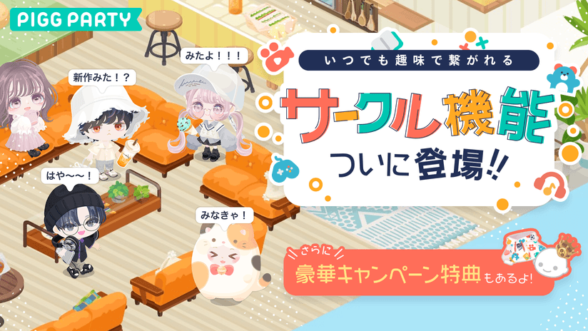 株式会社サイバーエージェント(本社:東京都渋谷区、代表取締役:藤田晋、東証プライム市場証券コード4751)が提供するアバターSNSアプリ「ピグパーティ」は、この度サービス開始から初となるメジャーアップデートを行い、趣味や好きなもので繋がることのできる新機能「サークル」を2022年9月26日(月) にリリースいたしました。
