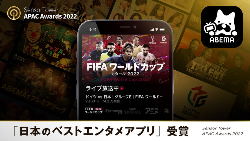 新しい未来のテレビ「ABEMA」が 「Sensor Tower APAC Awards 2022」において「日本のベストエンタメアプリ」を受賞