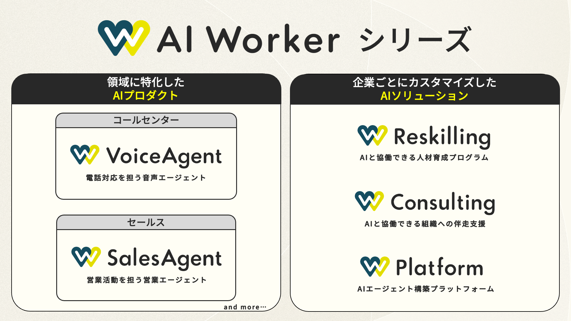 今後は、累計400社以上の支援で培った知見を拡張し、「AI Worker」シリーズを通じて日本企業の生産性向上に貢献してまいります。