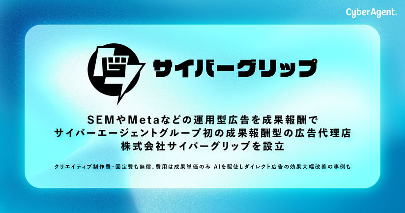 SEMやMetaなどの運用型広告を成果報酬で サイバーエージェントグループ初の成果報酬型の広告代理店、株式会社サイバーグリップを設立