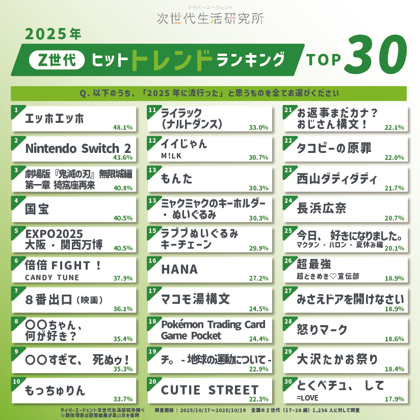 1.Z世代ヒットトレンドランキング2025 TOP30