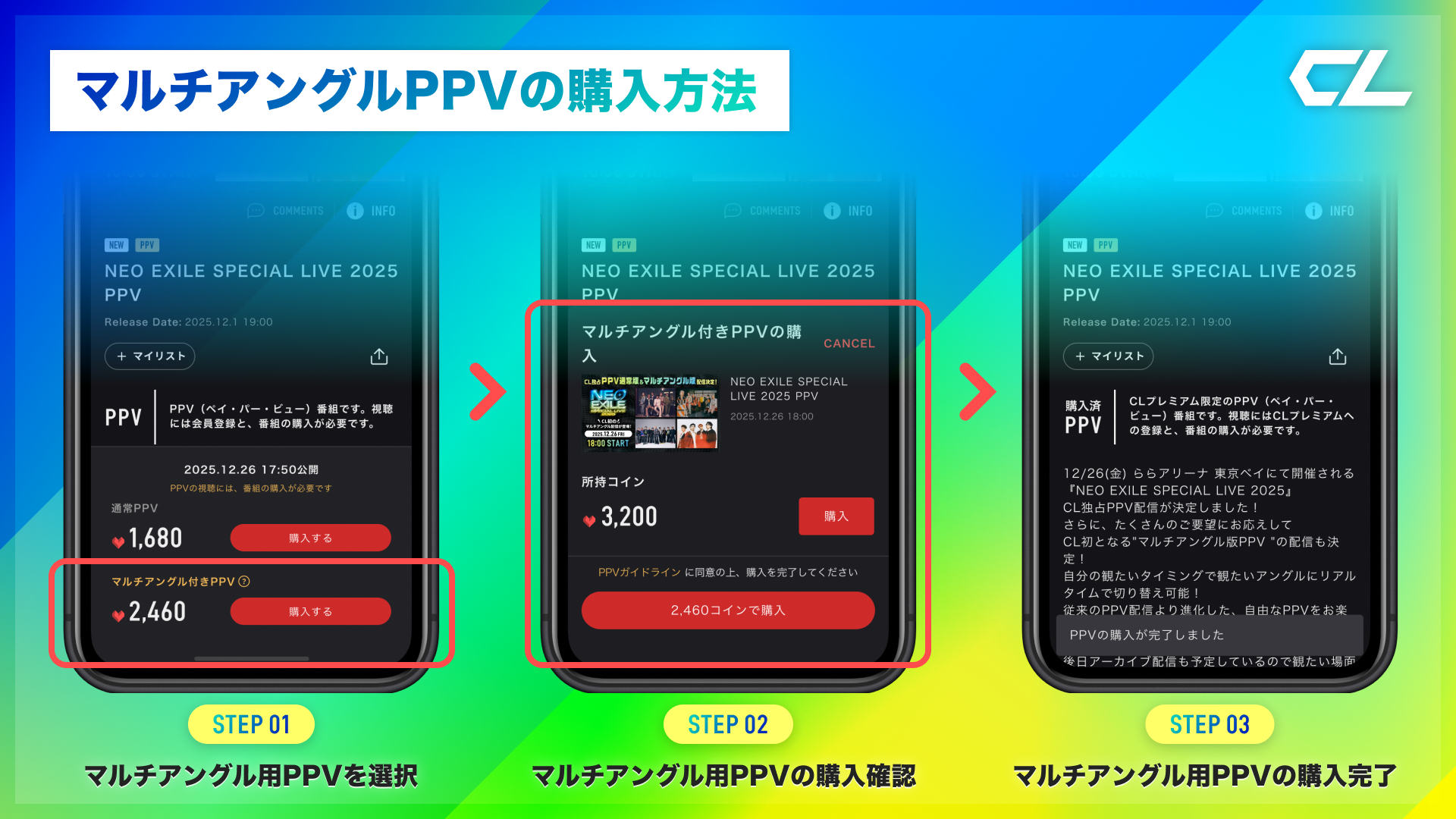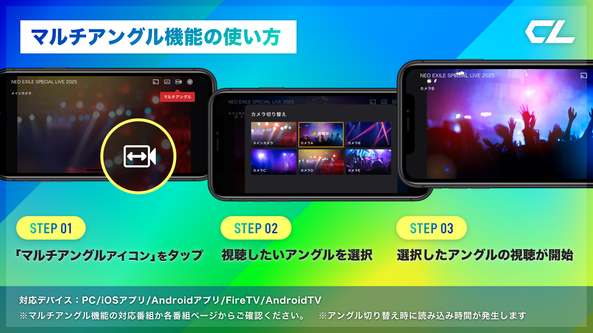 こうした声と、CLが長年培ってきた映像配信技術を活かし、今回のマルチアングル機能が実現しました。