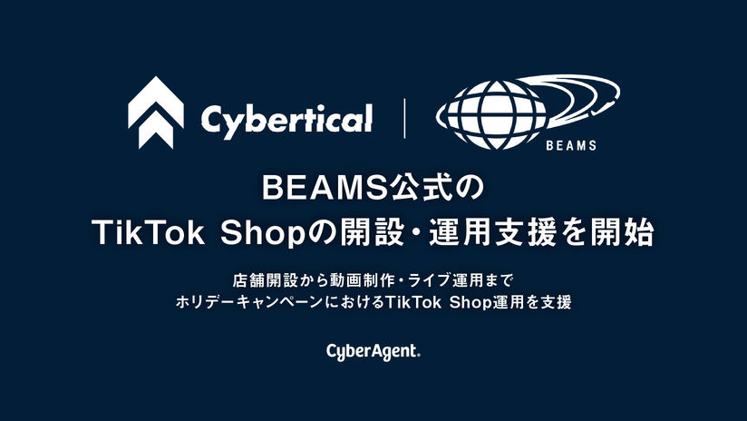 株式会社サイバーエージェント(本社:東京都渋谷区、代表取締役社長:山内隆裕、東証プライム市場:証券コード4751、以下:サイバーエージェント)の連結子会社である株式会社サイバーティカル(本社:東京都渋谷区、代表取締役:伊藤翼)は、株式会社ビームスホールディングス(本社:東京都渋谷区、代表取締役社長:設楽洋)が展開するブランド「BEAMS」のTikTok Shopの開設・ホリデーキャンペーンにおける運営の包括的な支援を開始いたしました。