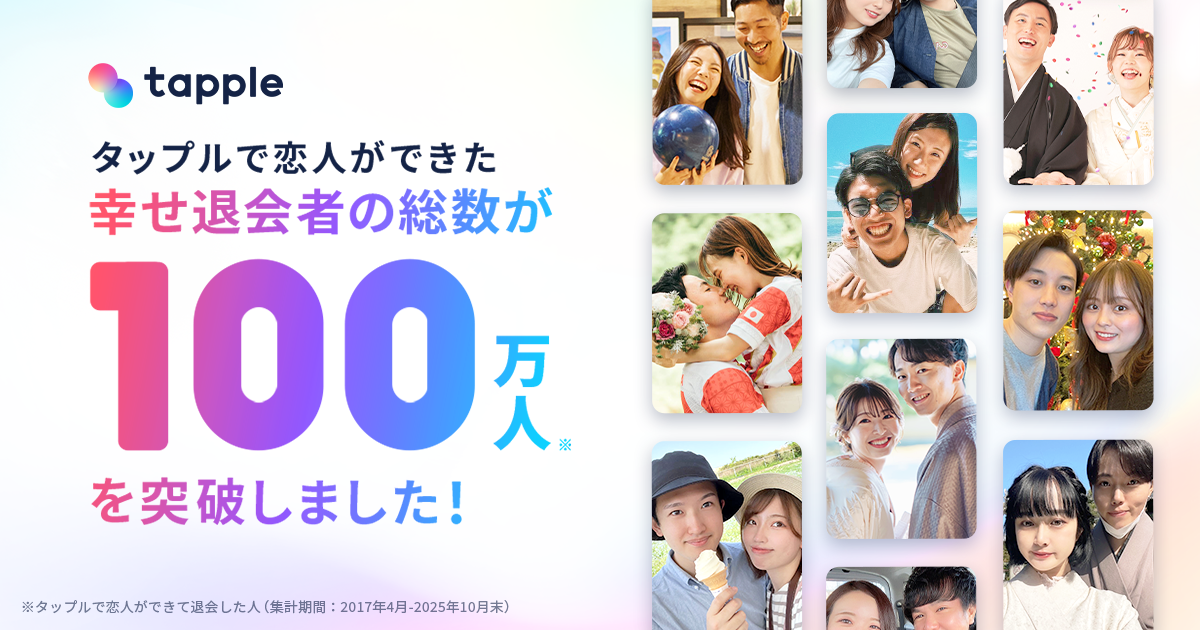 「タップル」で恋人ができた「幸せ退会者」が累計100万人突破