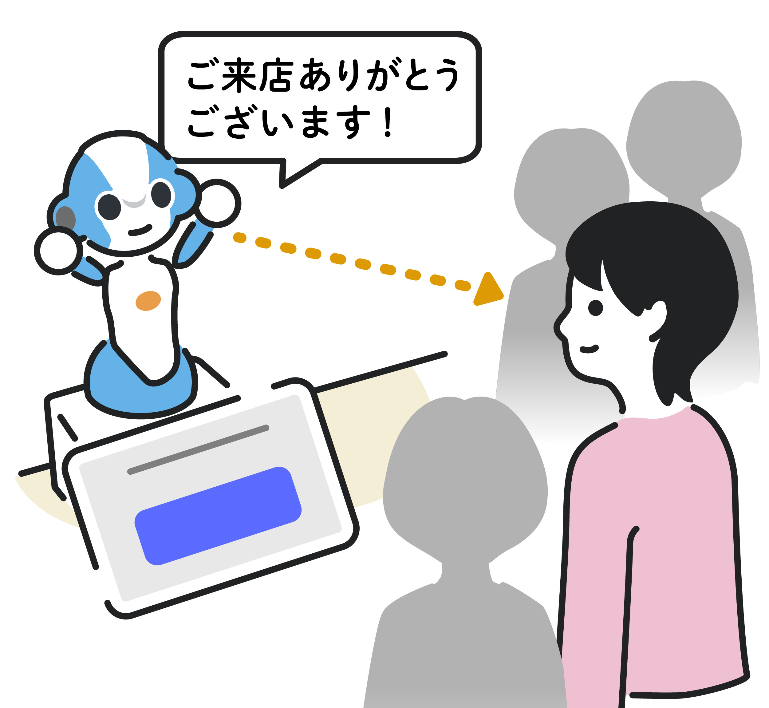 声かけの際には、周囲の環境や距離に応じて音量を最適化し、過度に目立たせることなく自然な案内を行います。