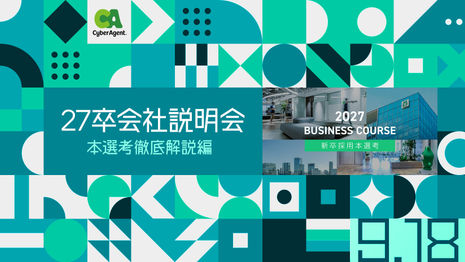 27年度新卒採用 会社説明会 -本選考徹底解説編- 「サイバーエージェントってどんなことしてる会社?」 サイバーエージェントの理解が深まると好評の会社説明会です。 本イベントでは、27卒本選考における選考スケジュールや選考フロー等を詳しくご説明させていただきます...