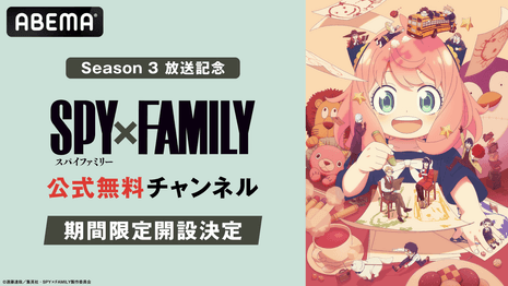 新しい未来のテレビ「ABEMA」は、TVアニメ『SPY×FAMILY』Season 3の放送開始を記念し、2025年10月7日(火)より、『SPY×FAMILY』公式無料チャンネルを期間限定で初開設いたします。 『SPY&time...