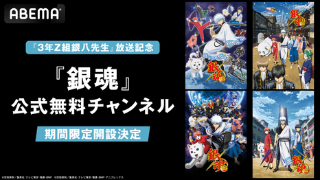 『3年Z組銀八先生』放送開始を記念し、 『銀魂』公式無料チャンネルが「ABEMA」に初開設 “TVアニメ全367話”を10月14日(火)から毎日順次無料放送