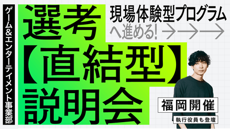 【福岡開催】現場体験型プログラムへ進める! 選考直結型説明会(ゲーム・エンターテイメント事業部主催)