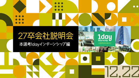 27年度新卒採用 会社説明会 ~本選考1dayインターンシップ編~ 「サイバーエージェントってどんなことしてる会社?」 サイバーエージェントの理解が深まる会社説明会です。 今回は、本選考4次選考通過者から選抜者のみが参加できる特別な【1dayインターンシップ】...