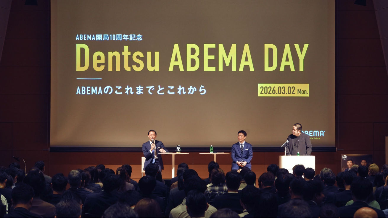 本記事では、「ABEMA」のこれまでの歩みと展望のほか、2026年3月にdentsu Japan社員の方向けに開催された「Dentsu ABEMA DAY」より、dentsu Japan CEO 兼 (株)電通 代表取締役社長の佐野氏、(株)AbemaTV代表の藤田による対談内容の一部をお伝えします。