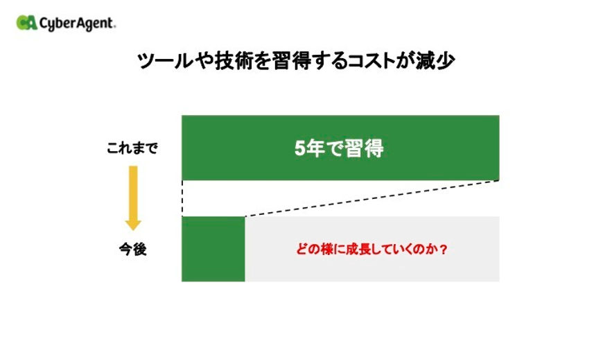 これまで時間をかけて身につけてきた技術は、AIによって短期間で習得できるようになっていきます。重要なのは、その浮いた時間で何に力を注ぐかです。