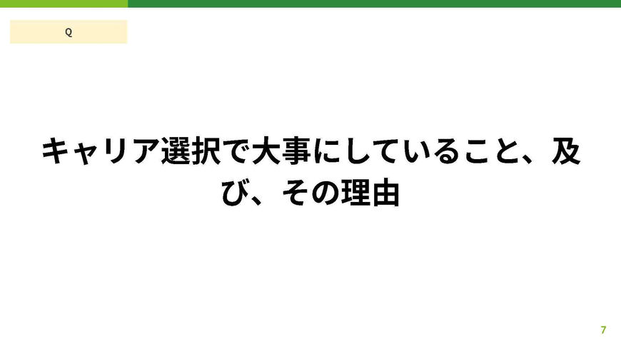 司会:では次の質問に行きます。「キャリア選択で大事にしていること、及びその理由」についてです。まずは木村さんの回答、「世の中に大きな変化を起こせる可能性がある事業に、より関わり続けること」「自分のスキルから選択することはほとんどない」という回答について教えていただけますか。