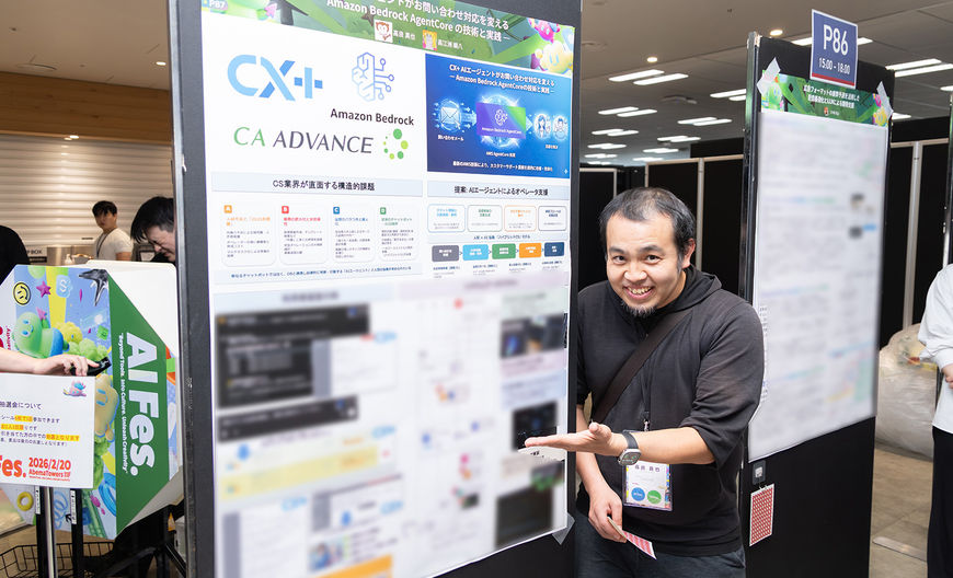 グループIT推進本部におけるAIやMCP推進をアピールする場として、社内情報検索プラグイン「CA Search」のブースとポスターを出展しました。